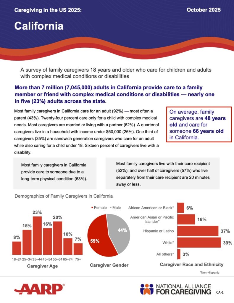近年來,家庭照護的內容愈發複雜與密集。越來越多照護者必須承擔「高強度照護」,不僅要協助親人完成日常生活,還要處理醫療照護、藥物管理,甚至接近護理師等級的專業照護工作。全美在2015至2020年間,照護者增加了約950萬人;在加州,許多照護者還需一邊工作、一邊照護,形成沉重的「雙重壓力」。這意味著:照護者不只變多,每位照護者承擔的時間、精神壓力與責任,也都逐年增加。