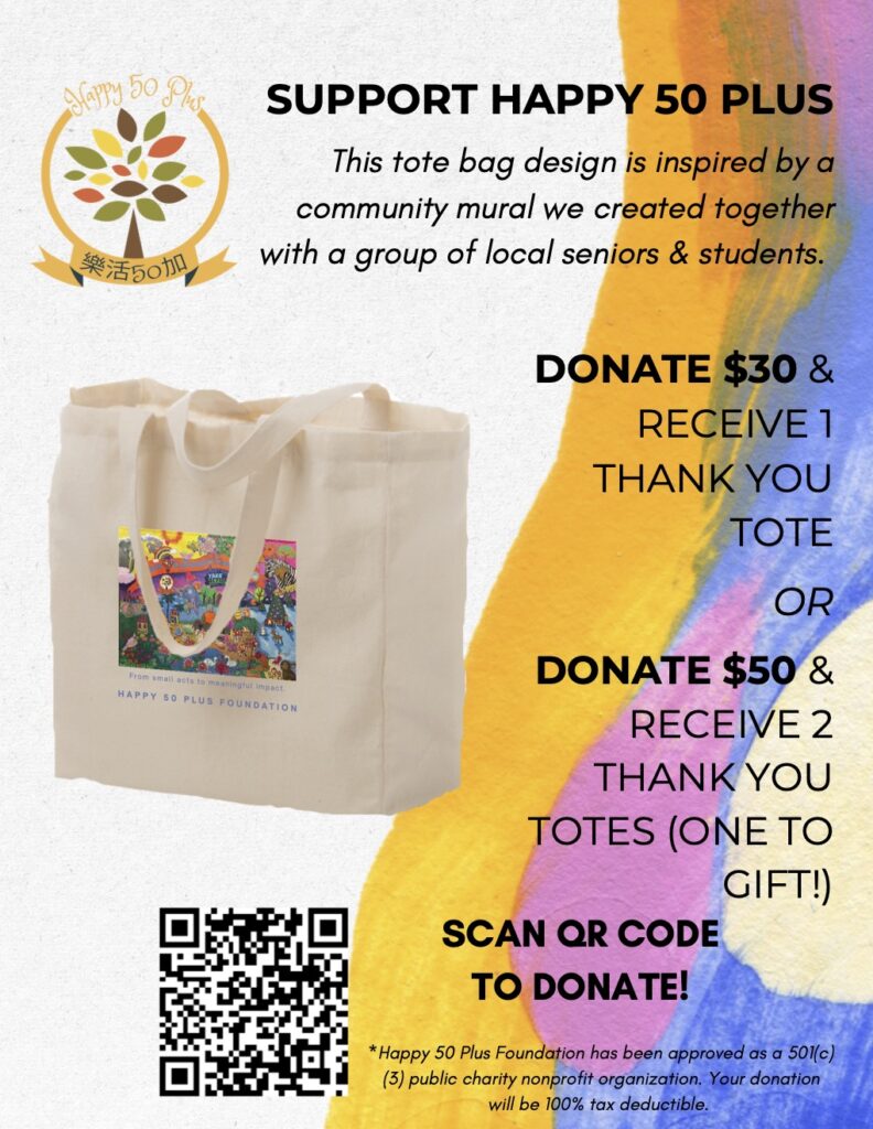 If you donate through Benevity, please call 1-800-881-3466 or email info@happy50plus.org — we’ll send you a tote bag as our thank-you gift!